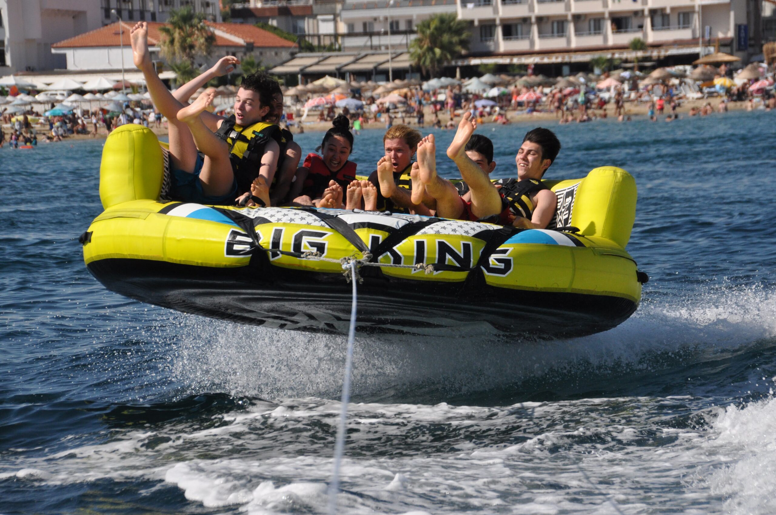 The UFO is a fun and stable towable ride designed with a seat and backrest for maximum comfort. Pulled by a speedboat, it glides over the waves and guarantees lots of laughter and excitement.